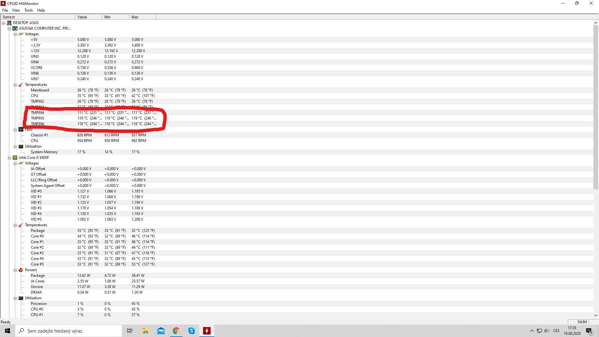 chci se zeptat. HWmonitor mi ukazuje teploty. TMPIN 4,5 a 6 okolo 120 stupňů. Dle mého by se při takových teplotách musel PC vypnout. Mimo to, ani při zátěži, ani nečinnosti se tyto údaje moc nemění. Základní deska ukazuje pořád okolo 26 stupňů, což mi při hraní přijde na druhou stranu málo. Jedná se tedy o chyby, popřípadě dějí se v HWmonitor chyby často a je lepší použít jiný software? Díky