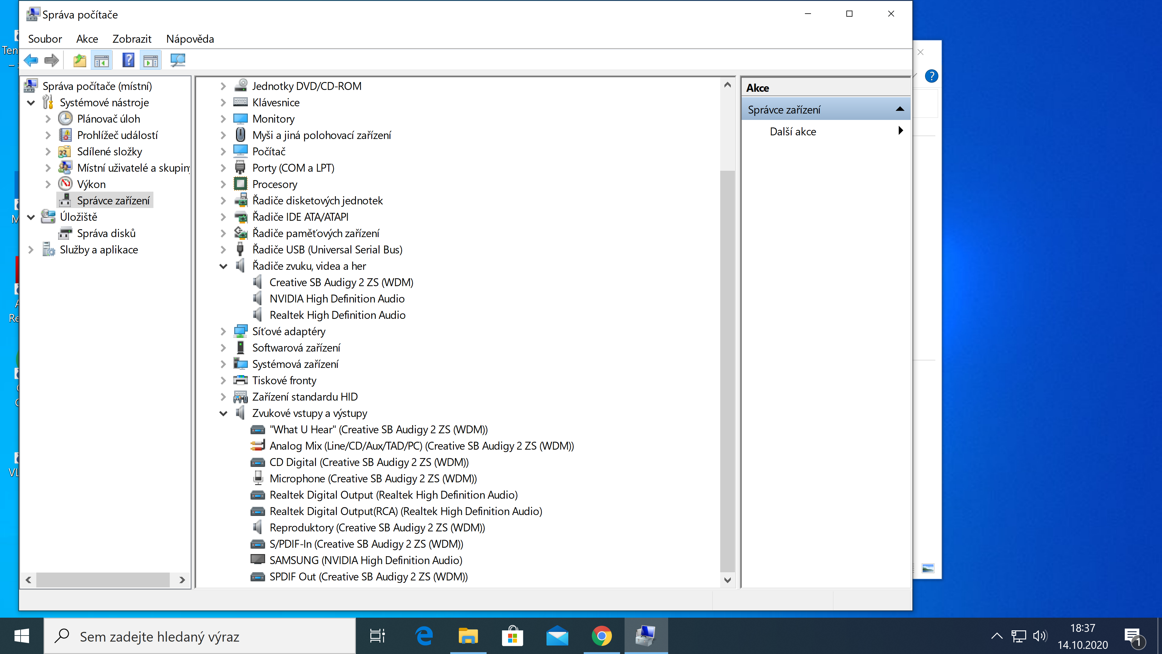 Dej sem screen ze správce zařízení, rozkliknutý na zařízeních zvuku, videa a her.