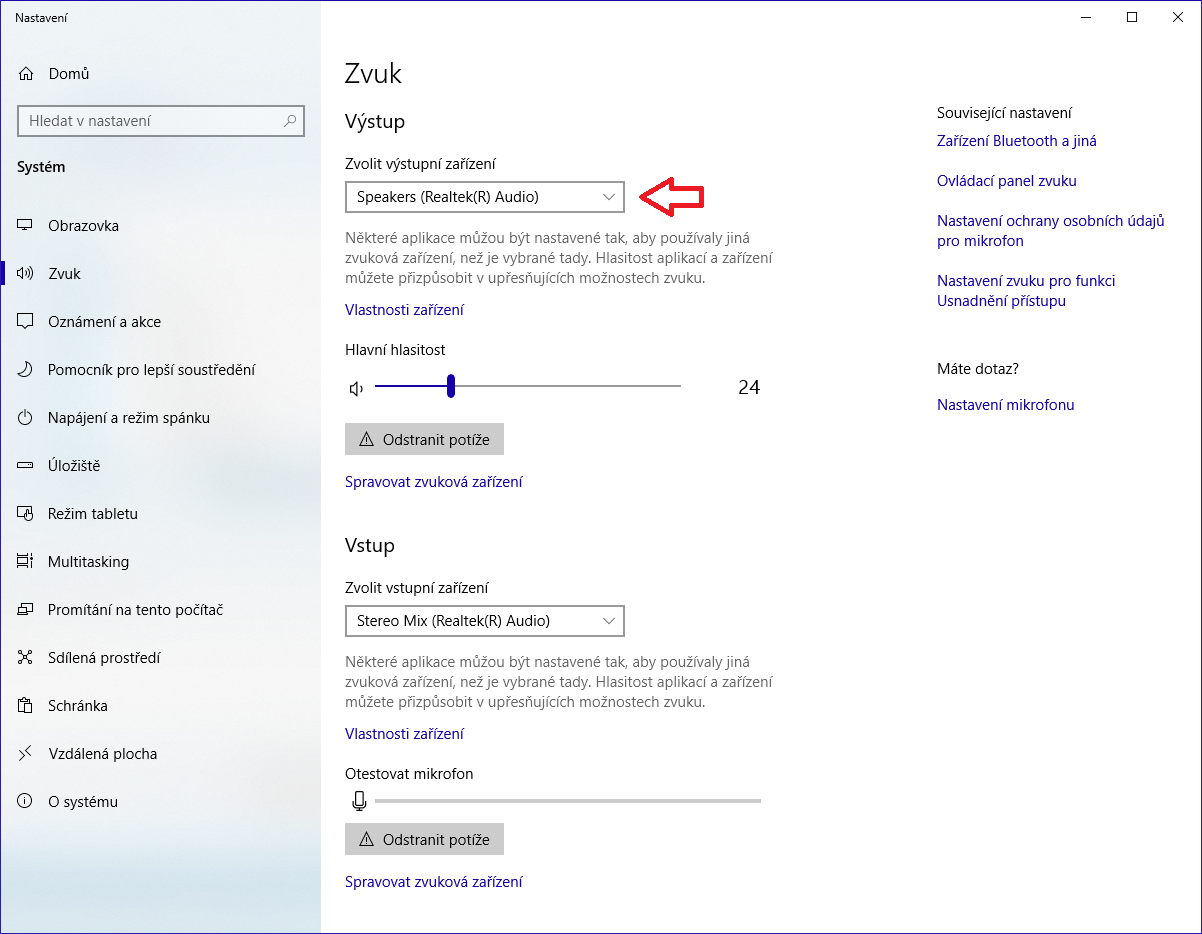 zvukový výstupy jsem přepínal... jedu jen přes sluchátka