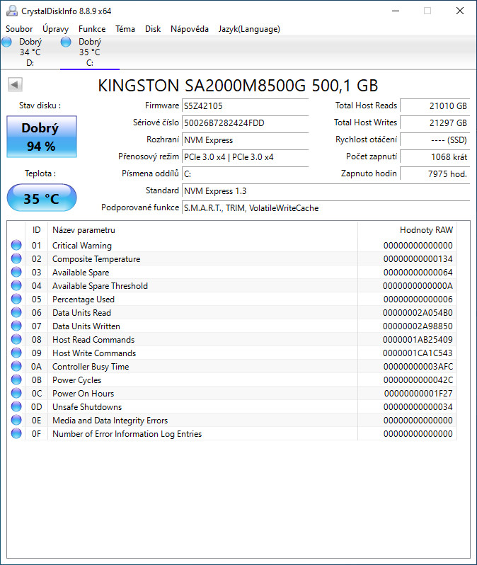 Kingston A2000, M.2 - 500GB_životnost??? Vyřešeno