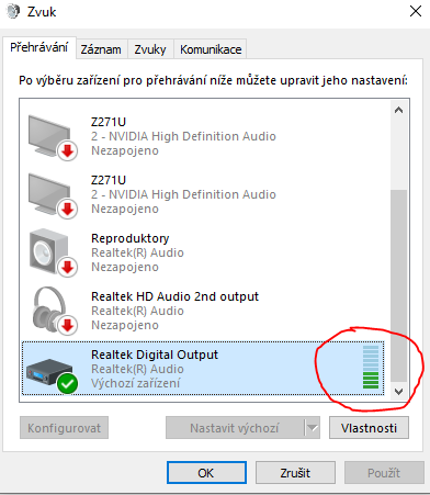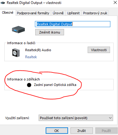 Ovladače mám nainstalovaný správně, ale jak to tak vypadá, tak defaultně se nastavil výstup na optickou zdířku a zaboha nemohu přijít jak to přepnout na klasiku 3,5 jacka.