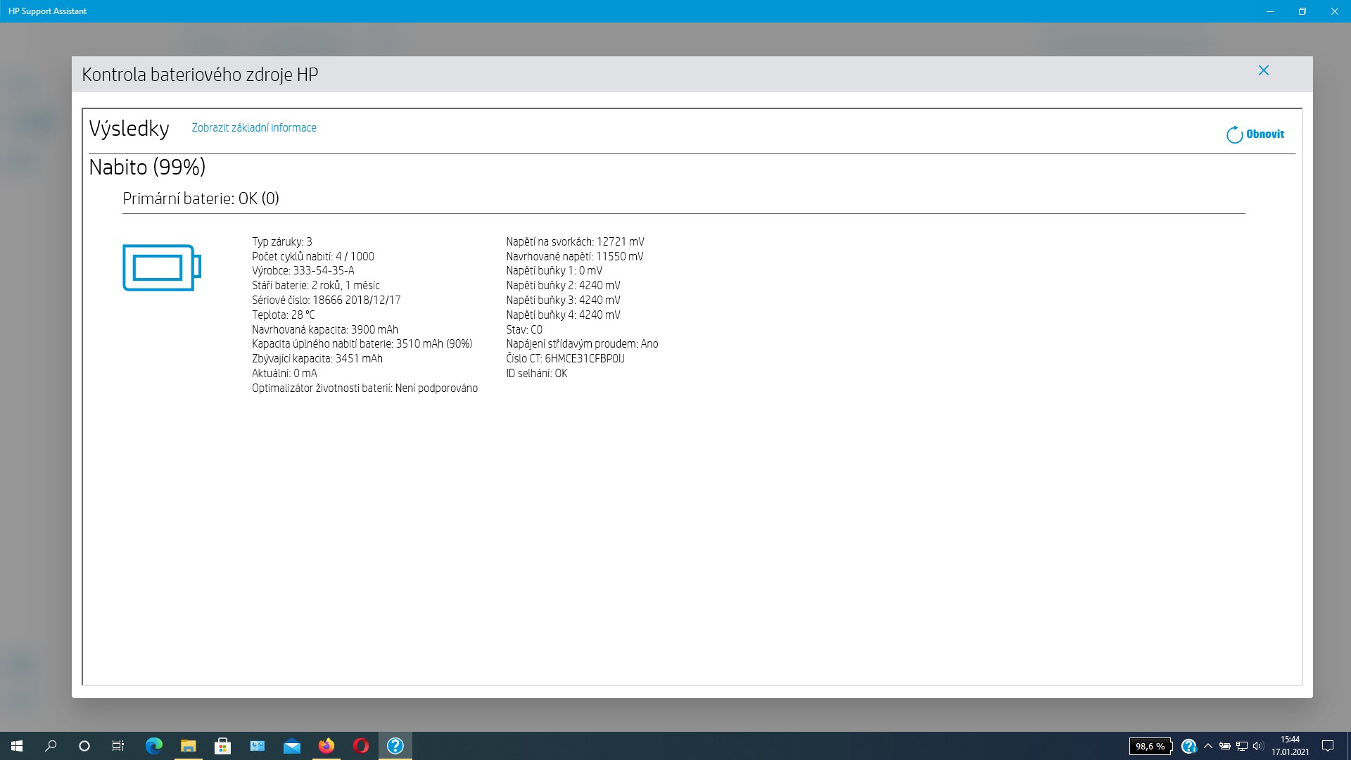 Jen pro info, když zadáš do CMD příkaz powercfg /batteryreport, tak ti samotný Wokna vygenerujou celkej přehlednej report kde je hodně užitečných infromací o baterii, včetně historie její kapacity atd.