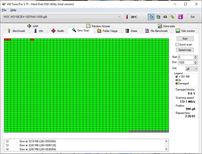 Tak netvrdím, že disk je OK vyloženě :) ale říkal jsem si že to podle screenu ještě neznamená vyloženě smrt a že vadné sektory se po tolika letech prostě objeví, ale disk je ještě zvládne ...
