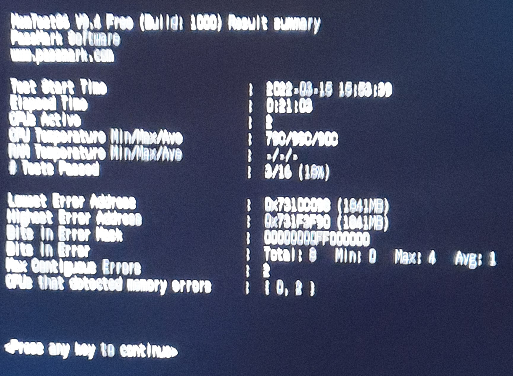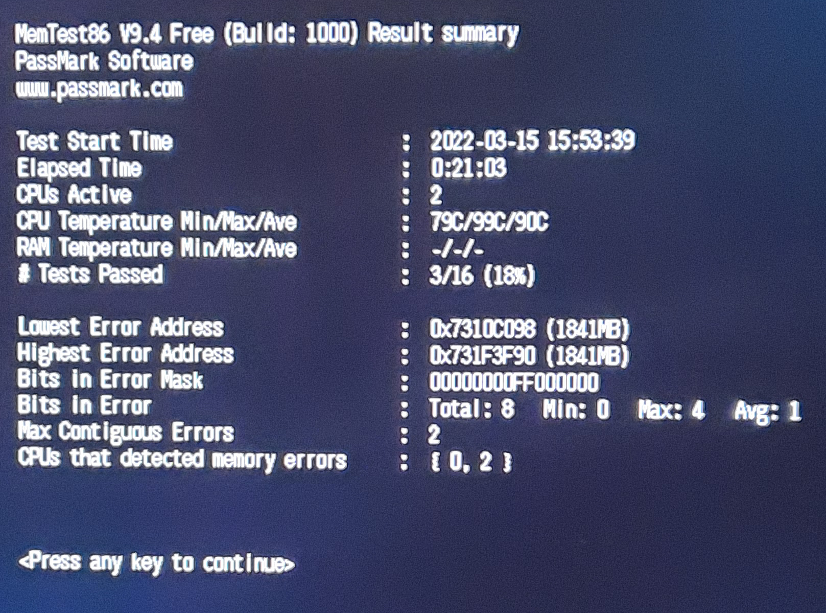 Stáhnul jsem si memtest a projel kompletní test; jestli (angličtina je pro mě pološpanělská vesnice) tomu dobře rozumím, odchází procesor.