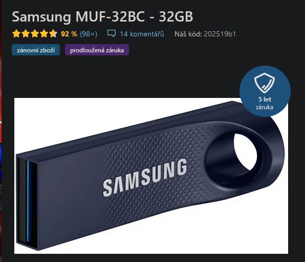 mám asi 5 a půl roku USB flash disk Samsung 32GB viz foto..běhal naprosto bez problémů..ted jsem ho delší dobu nepoužil a dnes jsem ho potřeboval pro přenos většího souboru a pře kopírování mi zarazila hláška o nedostatku místa. Moje překvapení nastalo, když jsem zjistil, že disk mi ukazuje kapacitu 249MB místo 32GB...jediné, co mi napadlo bylo zkusit znovu naformátovat, ale to nepomohlo.