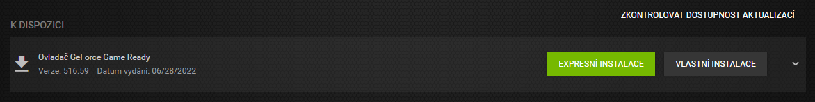 zapnu počítač, na základní desce se rozsvítí bílá dioda VGA a obrazovka hlásí, že HDMI konektor nemá signál. Poté musím HDMI konektor přepojit k základní desce, aby byl obraz dostupný přes integrovanou grafickou kartu. V aplikaci GeForce Experience v záložce Ovladače mi aplikace nabízí instalaci ovladačů GeForce Game Ready, i i když již jsou nainstalované. Když kliknu na jejich instalaci, zobrazí se mi chybová hláška, protože dedikovaná karta není připojena a ve Správce zařízení ji lze vidět, avšak je neaktivní (skryté zařízení) - chybová hláška: Hardwarové zařízení není připojeno k počítači.