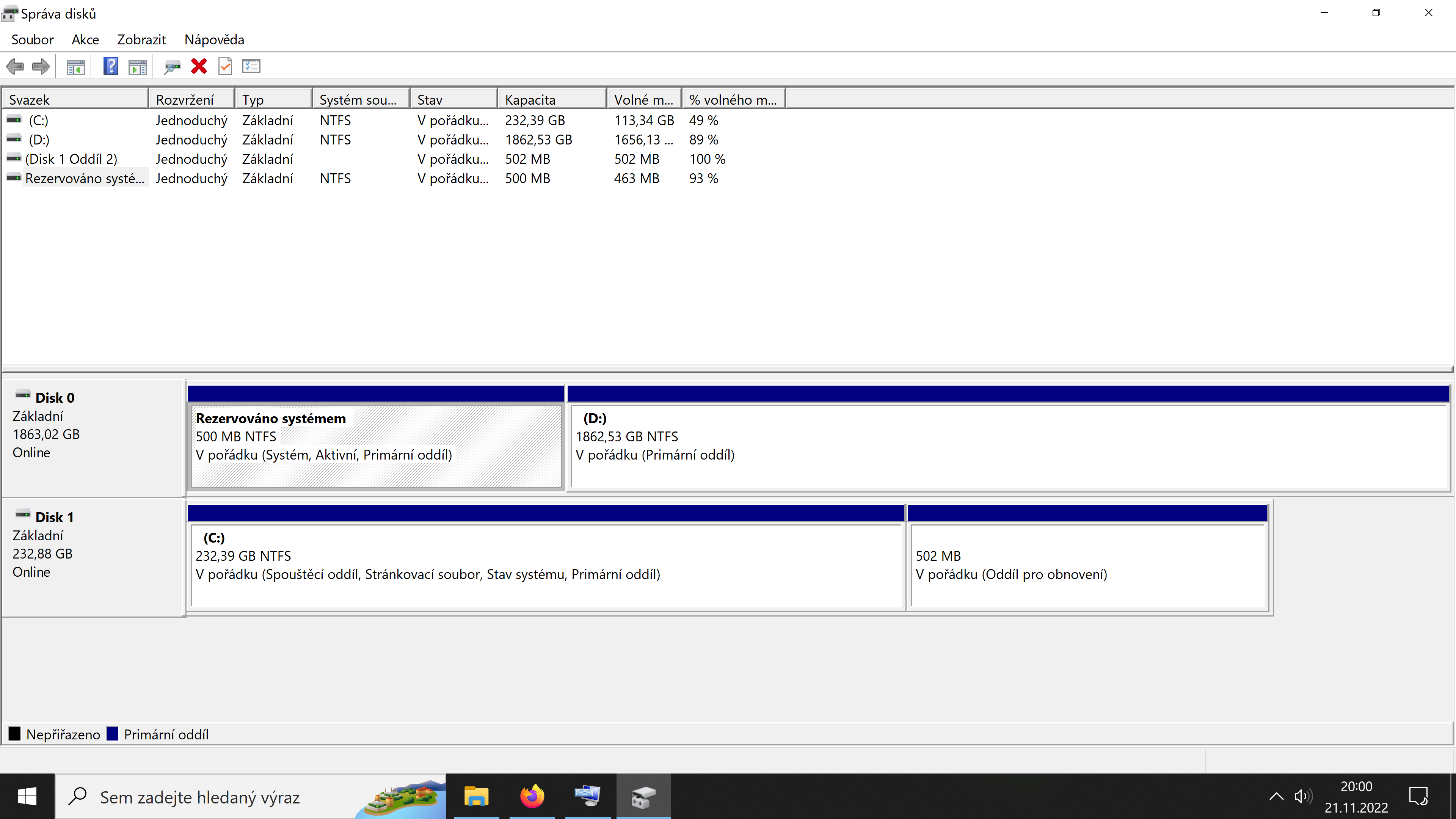 Když jsem kouknul do správy disků, tak mám na HDD oddíl REZERVOVÁNO SYSTÉMEM, což asi bude ten problém, i když si nejsem vědom, že bych něco takového při instalaci Windousů povoloval. Četl jsem, že něco takového si Windows vytvoří při aktualizaci??