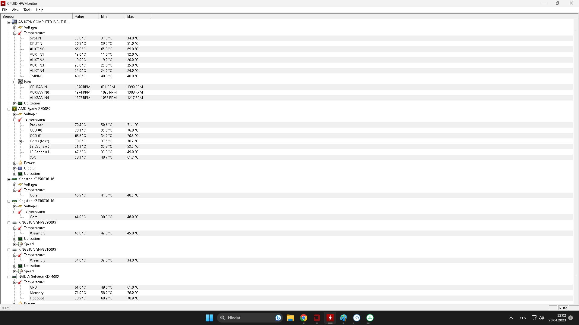 Teploty v klidu viz příloha 01, v zátěži 02. Stress testy jsem nechal běžet cc hodinu a bez pádu.