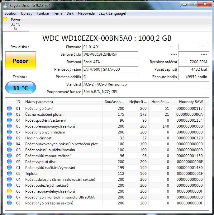 Disk dostal pekny zahul - 50.000 hodin provozu, ale 4400 zapnuti? To zadnemu disku nedela dobre.