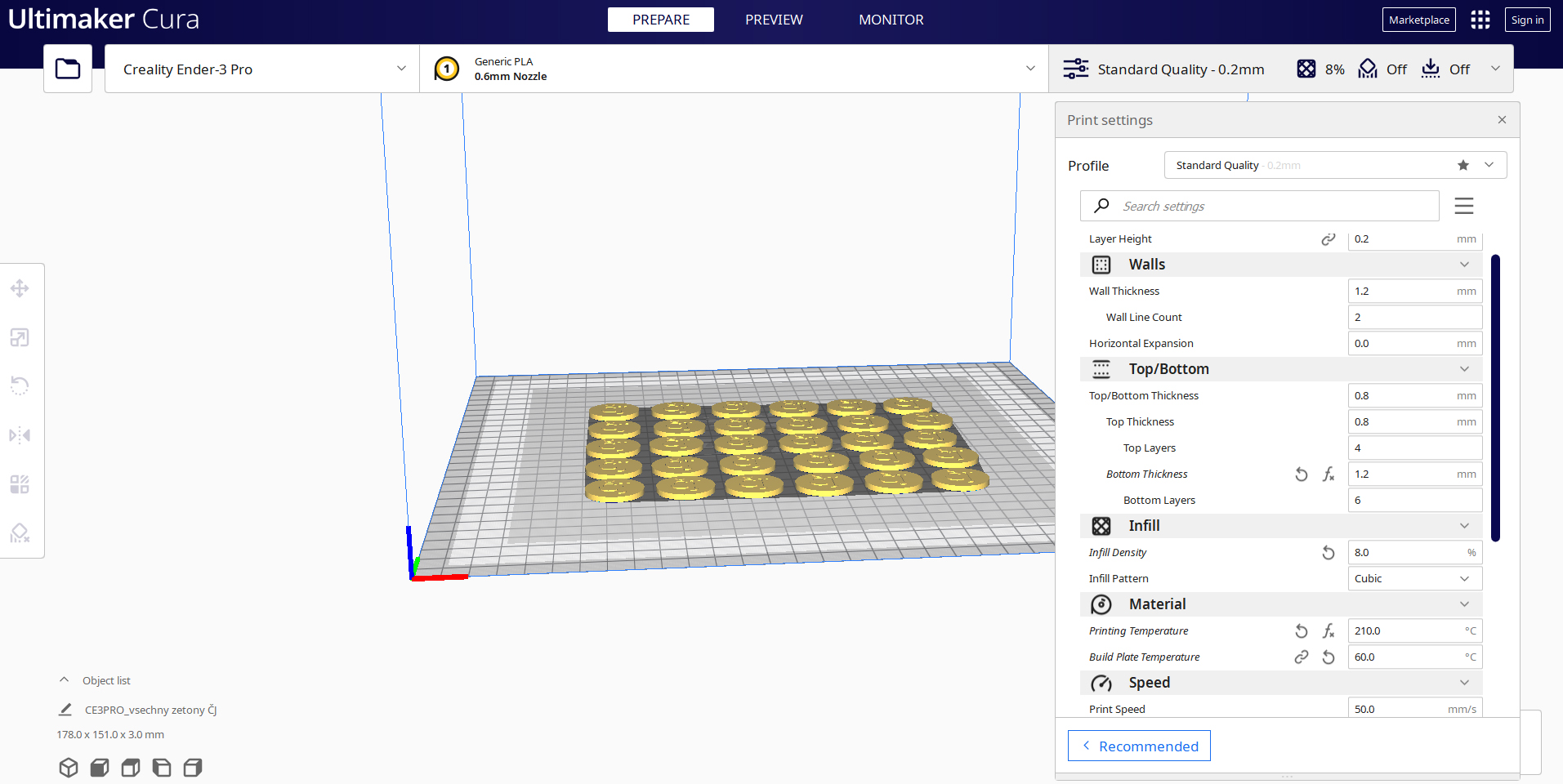Pěkně zdravím, po dvou letech jsem se vrátil k tisku na 3D tiskárně na Ender 3 Max. Vykalibroval jsem bed a jal jsem se tisknout. Velmi jednoduché objekty - žetony. Několik se jich vždy vytiskne v sadě v pořádku, některé ne. viz obrázek. Používám filament, tisková struna Filament PM 1,75 PLA, 1 kg - perlová červená. Nastavím bed na 60°C a extruder někde v toleranci, cca 210°C. Problém je, že se žetony tisknout detormovaně, především na okraji. Zkoušel jsem i jiný filament ale věc se opakuje. Co může být ve věci? Co si počít?