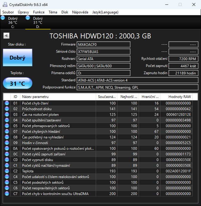 Ze SMART neukazuje zadnou chybu neznamena, ze disk je v poradku.