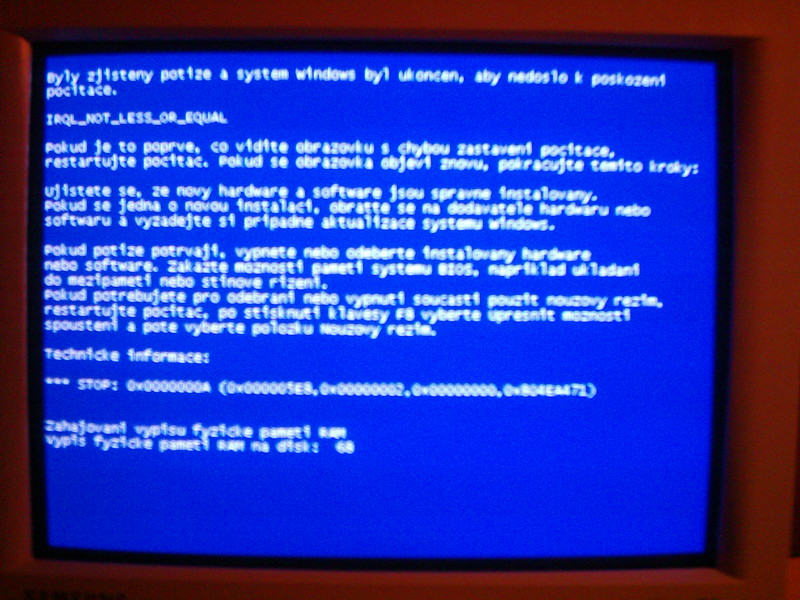 Modrou obrazovku většinou způsobí vadné,nebo špatně docvaklé paměti.