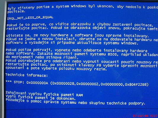 Jeste dodam ze sem hral CSS a pri tom mi to spadlo!pak mi nesel vubec net az dnes rano.(stalo se mi to vecer)mam win xp sp2.a teploty byly na cpu 52 a na mb 32.