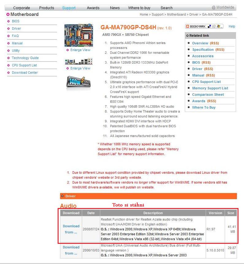 Stáhni si odsud ovladače zvuku pro Vistu - viz. screen.