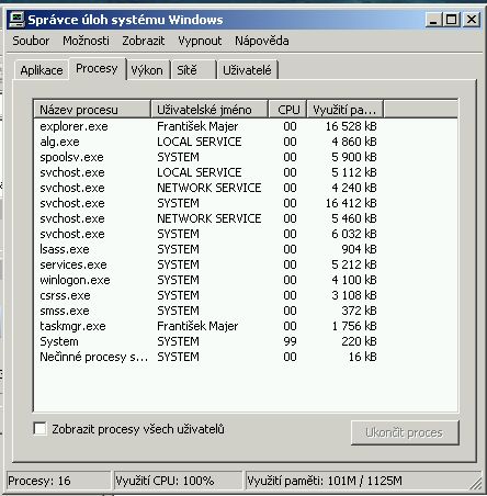 Přeinstalace Win proběhla dnes ráno, a nic..... Dál si CPU chrlí svých 100% a když po něm něco chcu tak jen nerado a pomalu reaguje.