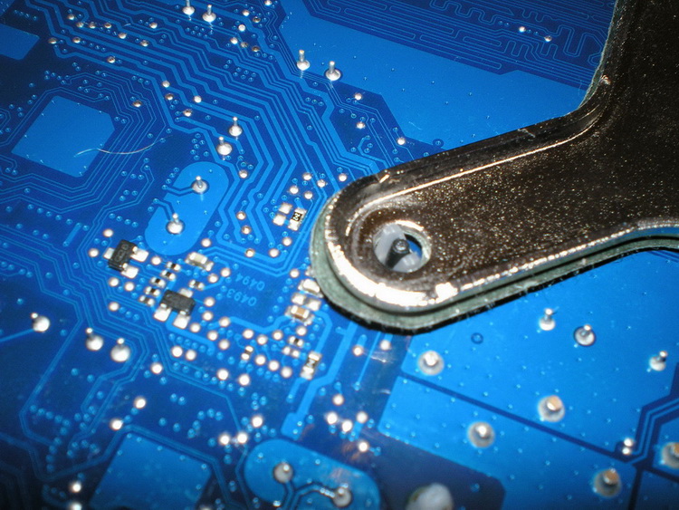 Tak to ma nenapadlo s tymi distancnimi sroubkami, ale mam ich tam akorat.Ale to co sem objevil se muselo stat kdyz sem montoval ten chladic na CPU.Tam je ten jeden bocni chip zlomeny.Muze to delat problemy?