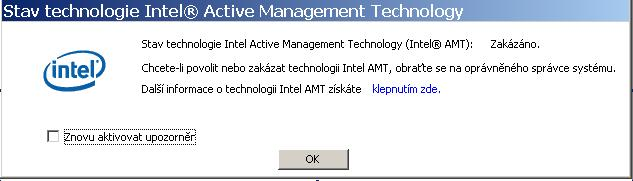 Na hlavním panelu v části u hodin figuruje ikona (přeškrtnutá červeným křížkem viz obr.1) na kterou najedu-li kurzorem má název „Stav Technologie Intel R Active management Technology“ (viz obr.2). Kliknu-li na ni, otevře se panel se stejným názvem (viz obr.3). Jsem Správce systému ale ne natolik zkušený abych věděl co se po mně chce a ještě v angličtině. Domnívám se že jde o něco co souvisí pravděpodobně s procesorem nebo grafickou kartou, ale co? Vlastně oč vůbec jde? Kliknu-li na "Další informace o technologii Intel AMT získáte klepnutím zde" dostanu se na stránku Intel:http://www.intel.com/business/business-pc/index.htm (plné angličtiny).