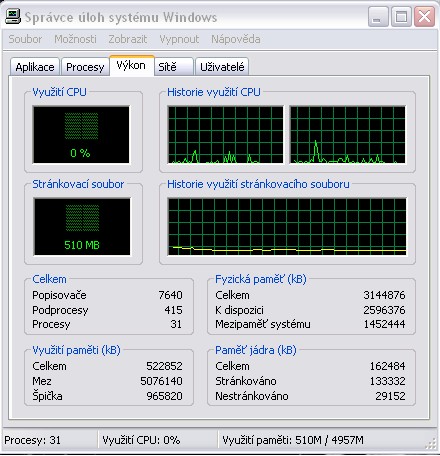 Na kolik procent maš vytižene CPU se podivej Ctrl+Alt+Delete a nahoře maš založku VYKON a je tam procentualne naznačeno kolik % CPU se využiva :) nejlepši by byl screen :)