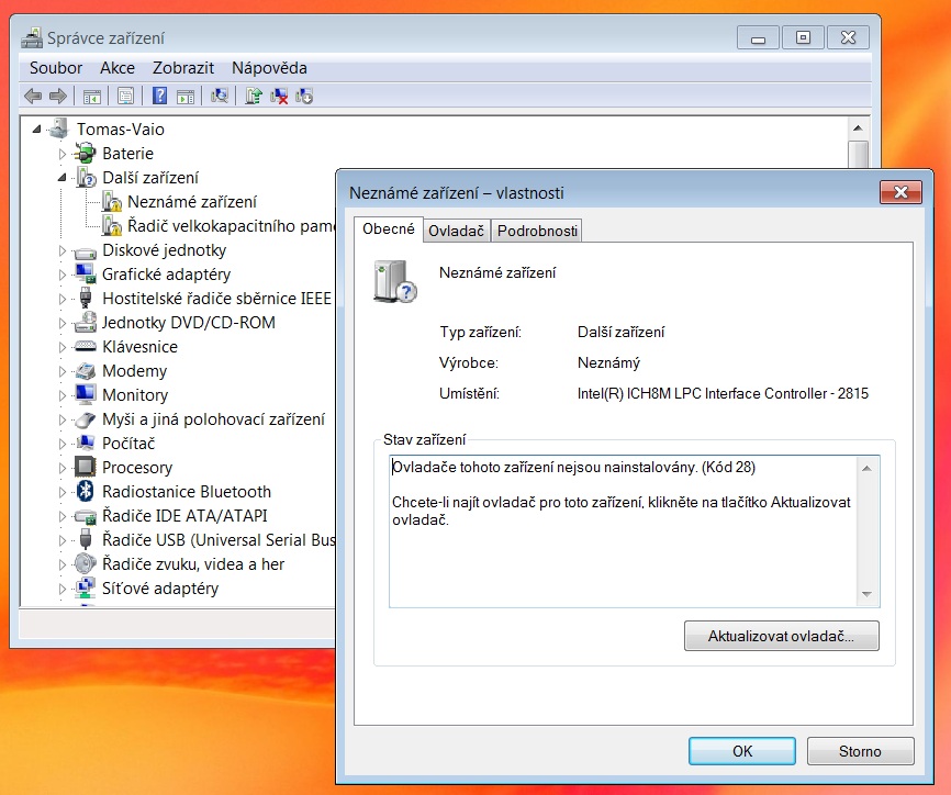 Nainstaloval jsem si Win 7 a po trochu peripetiích se mi podařilo rozchodit téměř všechno. Bohužel mám ve správci zařízení dva vykřičníky a nevím co si s tím počít. Zkoušel jsem instalace chipsetu ( z ofiko www intelu - tam mi to napsalo že nemám požadovanou konfiguraci, a i ze stránek SONY - tam to stáhnu a když dám vyhledat ovladače a uvedu cestu ke staženým ovladačům tak je to z té složky nebere.)