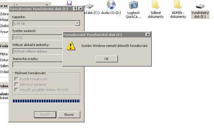 Když na něj kliknu, chce naformátovat, dám naformátovat a po chvilce to ukáže, že nelze naformátovat.