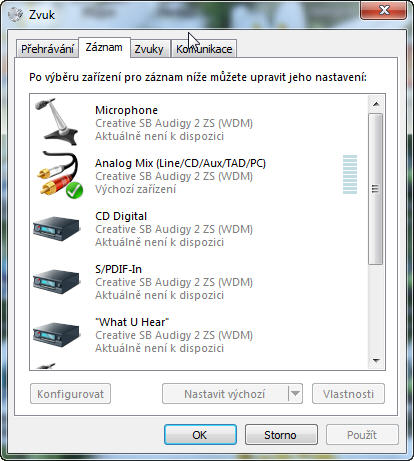 Nebo tam máš What U HEAR,co slyšíš- změň na Analog Mix Line