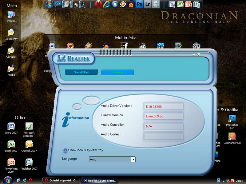 V Program Files jsem našel nějakej Realtek Sound Manager, ale je tam jen ekvalizer a efekty ke zvuku, nic jinýho jsem tam nenašel