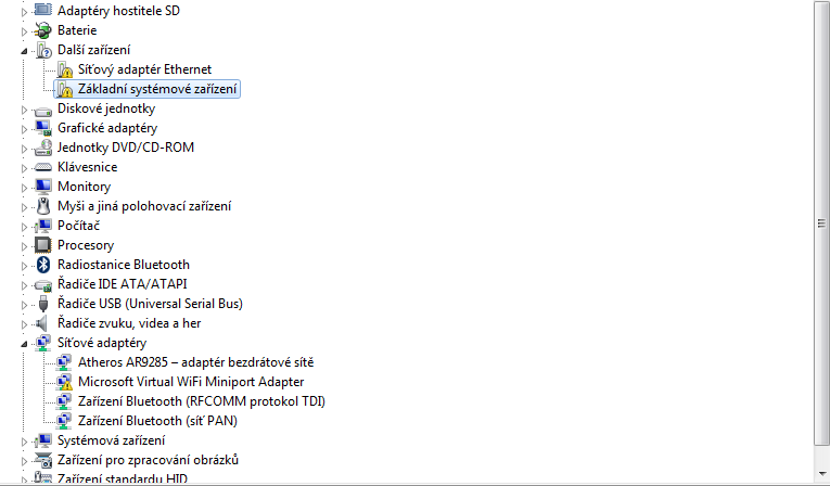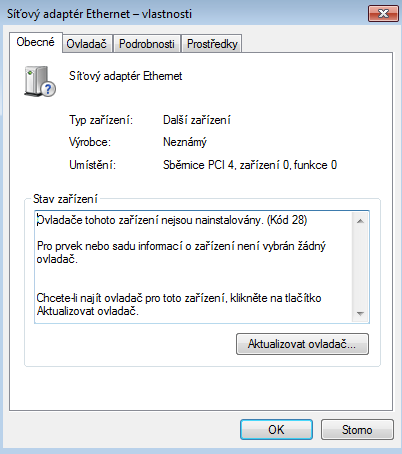 Re: PC nereaguje na přípojení síťového kabelu, chybí ovladač