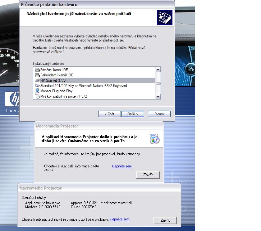 Ahoj, mám problém se scanerem. Jednou se mi to už podařilo vyřešit, teď už jsem však v koncích. Spustím instalačku z CD dodávaného ke scaneru (HP3770), naběhne volba instalace a když ji spustím, naběhne mi instalace hotova ale s vykřičníkem - pro opětovnou instalaci se vraťte na úvodní stranu a instalaci opakujte. A takhle stále kolem dokola.... :mad: