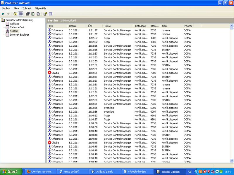 Většinou jsou chyby výpadku zaznámeny v logu, tak se do něj podívej a pošli nám sem screen obrazovky. Pak se pohnem dál.