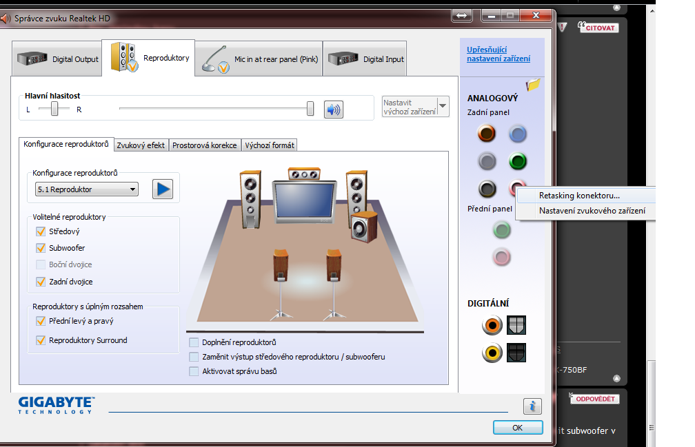 u nejakejch ovladacu (treba u tech co mam ja) je ze kdyz pripojis kabel tak se te to zepta, co to je. takze muzes mit subwoofer v jakykoliv dire