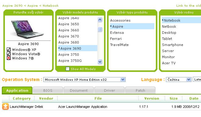 Ahoj prosím o pomoct u acer aspire 3690 mi nejde postranní panel (ten jak sou tam volume +-,play/stop atd...) nasel jsem nějaké ovládače na netu ale ňák tak nevím které by to mohly byt