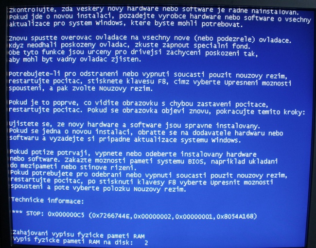 Ty hlášky na Blue screenu tam nejsou pro legraci, ale informují o závadě - proto je třeba je číst!