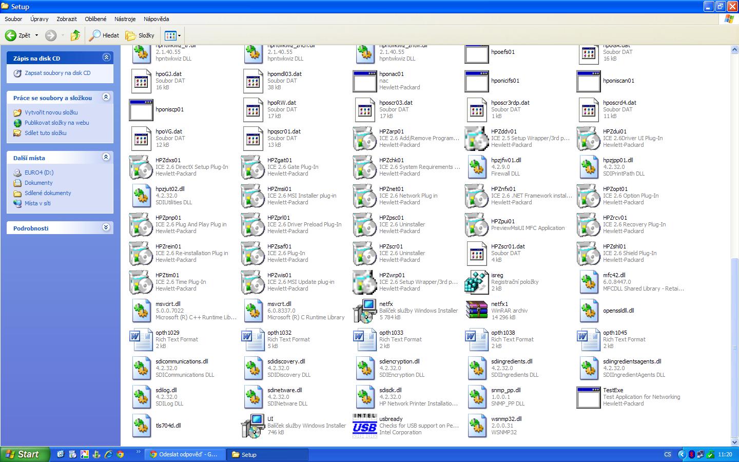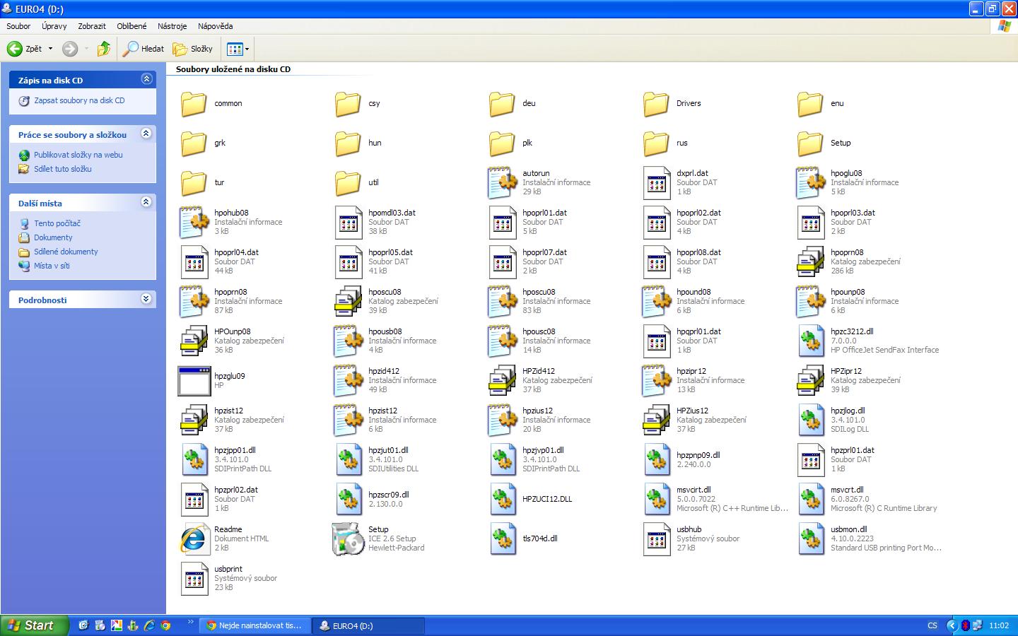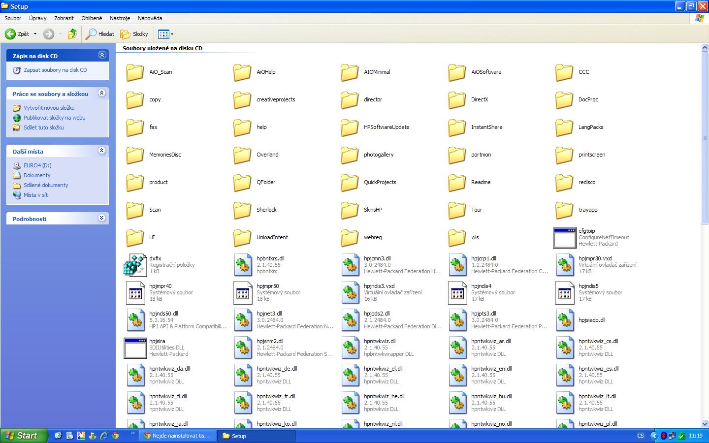 Jo přidat nebo odebrat programy jsem zkoušel tam jsem vše odebral co tam bylo po původní instalaci tiskárny. CCleanerem jsem taky čistil a nic. Mám Win XP. To znamená, že se CD nespustí samo a nezahájí instalaci, musím ho spustit ručně, ale po ručním spuštění nevím jak se dostat do instalačního procesu.