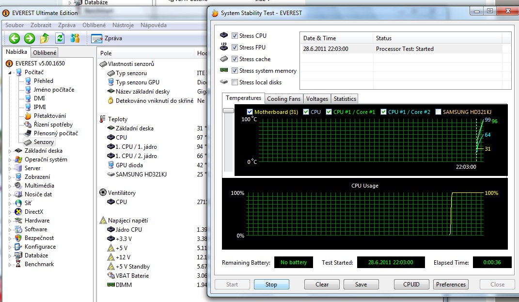 Mám problém s velmi vysokou teplotou procesoru při zátěži. Kddyž na počítači dělám klasické kancelářské věci teplota CPU se drzi okolo 28°C ,ale jakmile dam treba test v everestu teplota se mi behem par vterin (30-45s) vysplha az k 95°C i více max.116°C. Nechci samozřejmě CPU zničit tak to vypnu, ale při hraní her to nijak neuhlídám a stane se mi že se sám vypne. Tyhle teploty mě děsí, na CPU byl i dán nový chladič ( Zalman ZF9225ATH) pasta byla taky použita a ve skrini pekně proudi vzduch dovnitr i ven. Už si s tím nevím rady :((