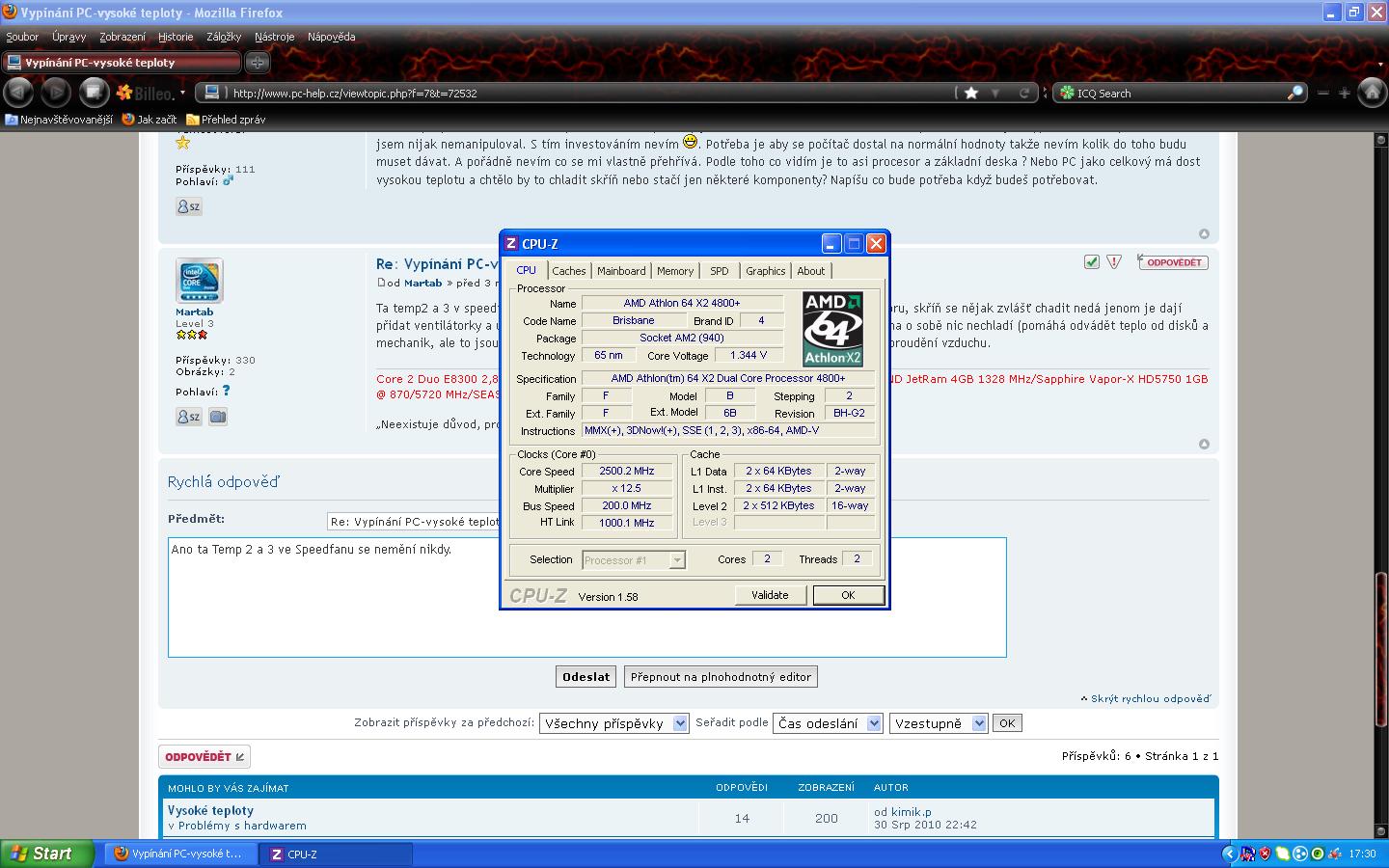 Ano ta Temp 2 a 3 ve Speedfanu se nemění nikdy. Jestli teda říkáš že to bude procesor tak nějaký takový by postačil? http://www.alza.cz/chladic-evercool-buf ... d77571.htm