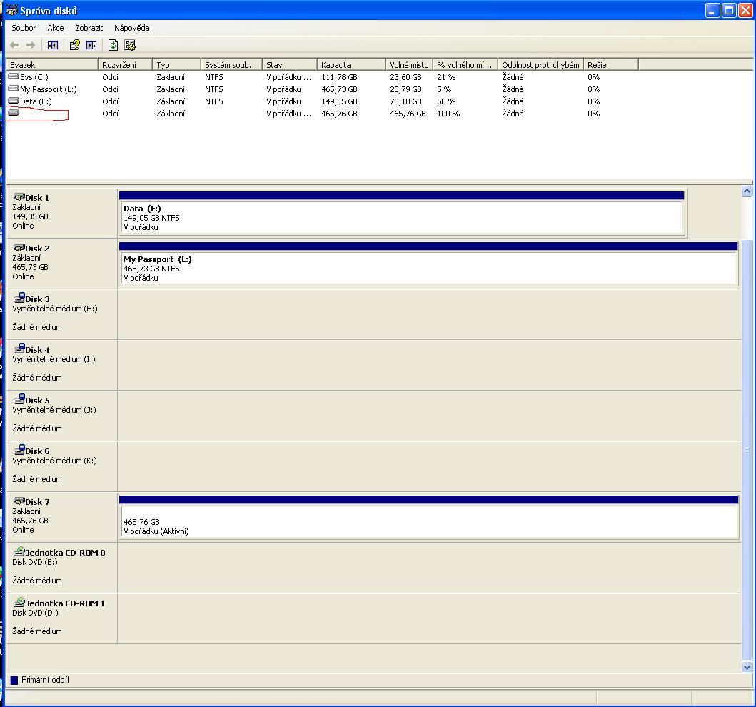 ten My Passport je jinej HDD to kde neni nic jak je zatrhnuto cerveno to je to co jsem tam pripojil kdyz na to kliknu pravym tak krome "Odstranit odil" nic jineho vysviceneho neni