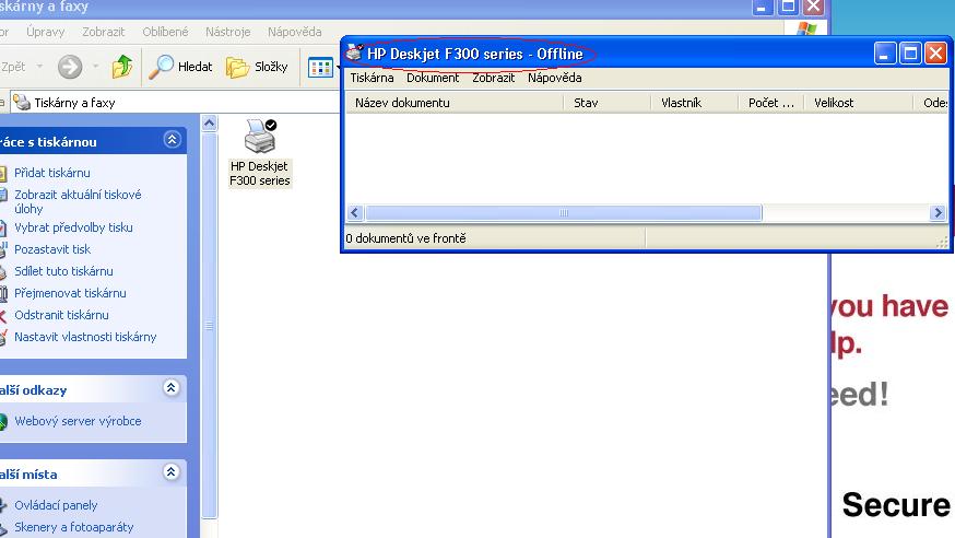 Počítač si myslí, že tiskárna je vyplá