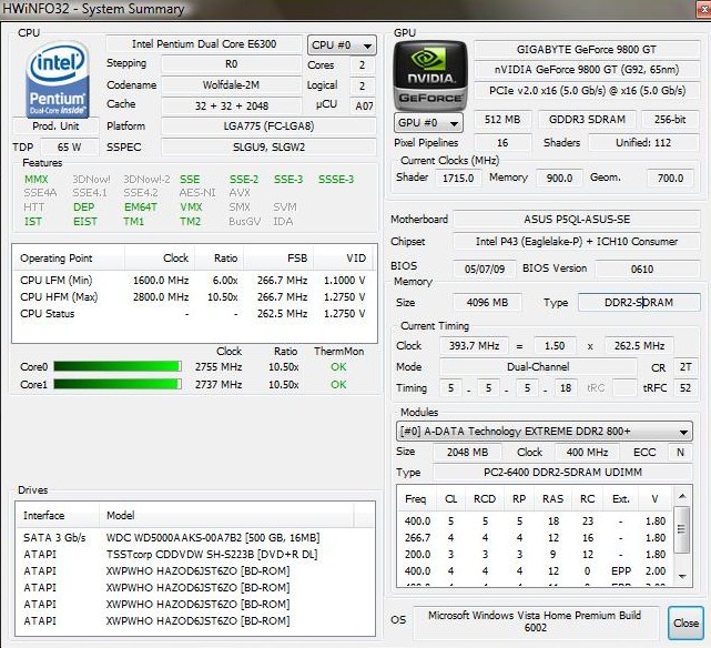 Pentium(R) Dual-Core CPU E6300 @ 2.80GHz (2 CPUs)