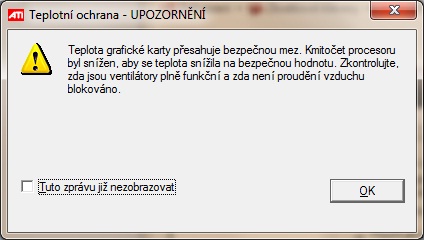 Dnes ráno jsem vyndal grafickou kartu a očistil od prachu, teplota byla okolo 65° a při hraní byla maximálně 95°, hra nespadla a upozornění se taky neobjevilo. Ale stejně se mi zdá ta teplota moc velká.