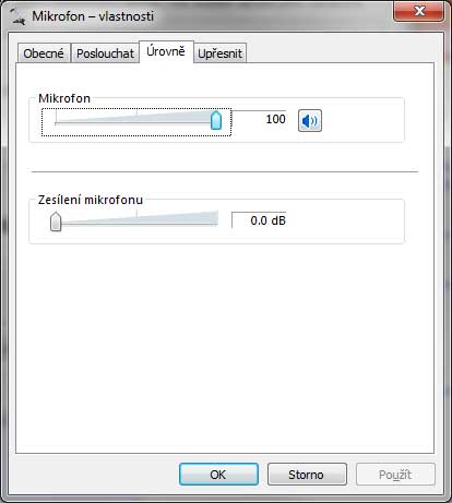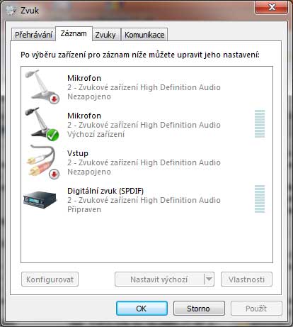 Ovládací panely/Hardware a zvuk/Spravovat zvuková zařízení. Zde si zkontroluj, zda máš správný mikrofon.