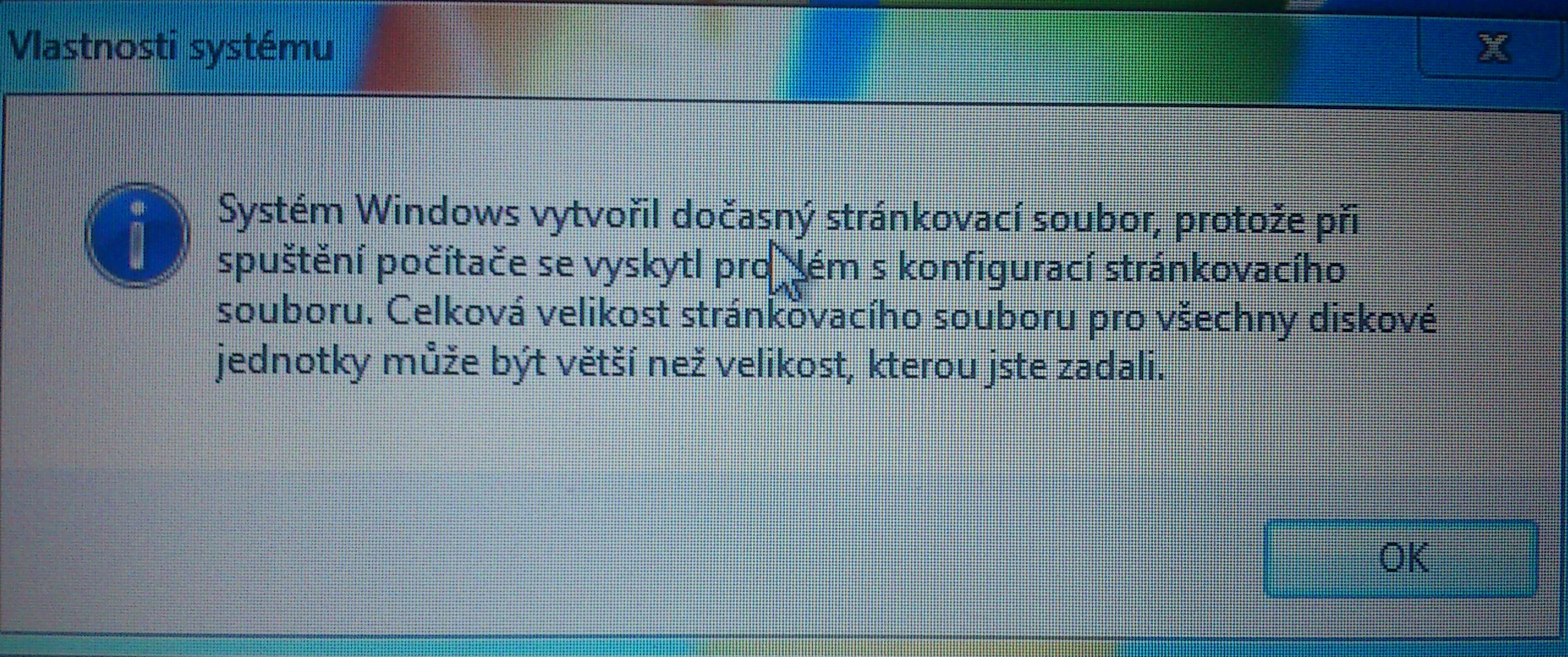 Klikni na to změnit a nastav stránkovací soubor na 1,5 velikosti RAM, zda to půjde.