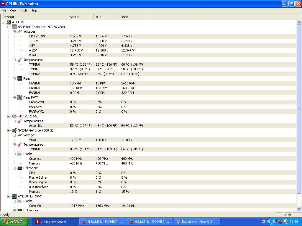 Takže: Rogue Killer se mi nepodařilo spustit ani v úsporném režimu. Několikrát jsem zkoušel MemTest, vždy to bylo max. tak 1:45 hod. a poté počítač zamrzl, nicméně za tu dobu to neobjevilo žádné chyby. U HD Tune byl jeden čtvereček červený, jinak vše zelené.