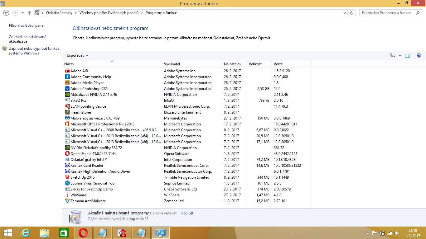 Problém s vyskakovacíma oknama vyřešený, ani ty vyhledávače už se nemění, smazaly se mi všecny ty nepotřebné aplikace z plochy, akorát v ovládacích panelech když otevřu "odinstalovat nebo změnit programy" tak tam mám stále Winsnare a nějaký BikaQ Rss