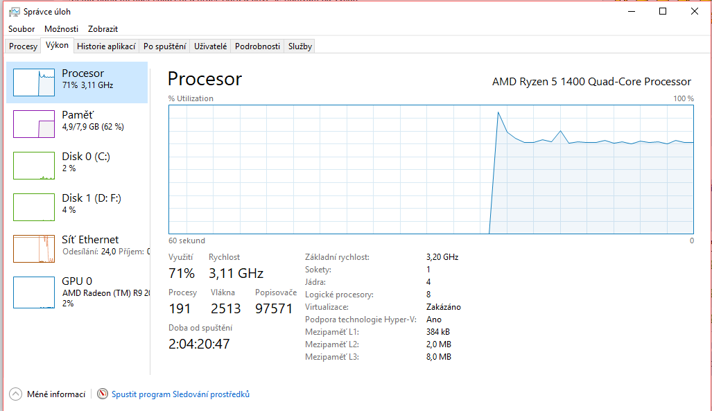 Celou dobu mi hučí chlazení u processoru a když se podívam na výkon tak mám 70-80% výkon (mám zpuštěný jen prohlížeč google chrom)