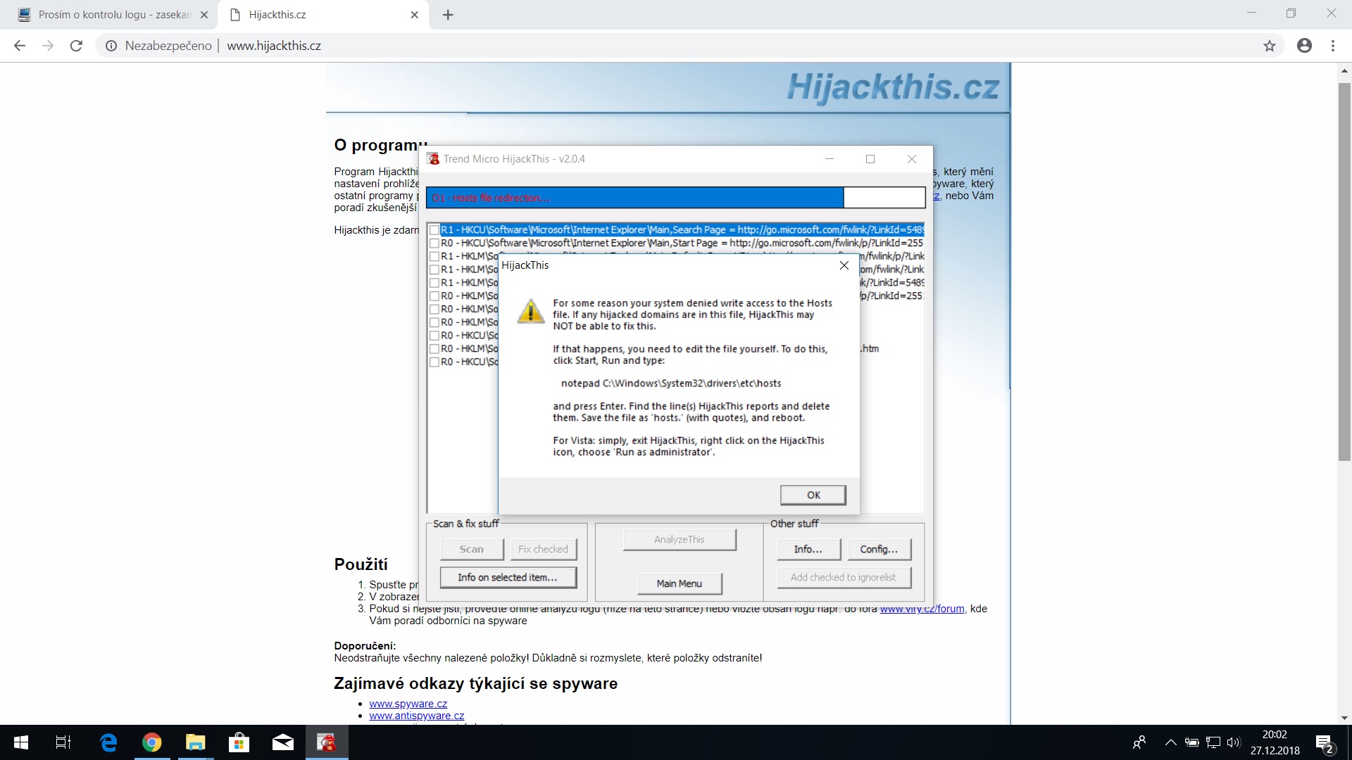 Zavři ostatní aplikace a prohlížeče, odpoj se od netu a fixni v HJT:
