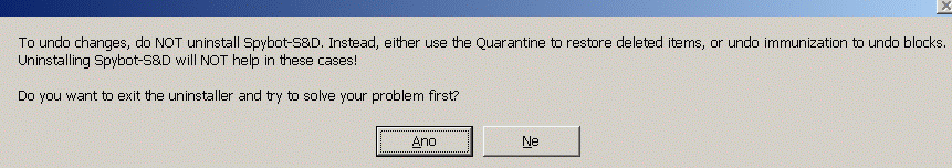 Zkusil jsem odinstalovat Spybot, ale zarazilo mě tohle upozornění (příloha), takže jsem použil "undo immunitazion".