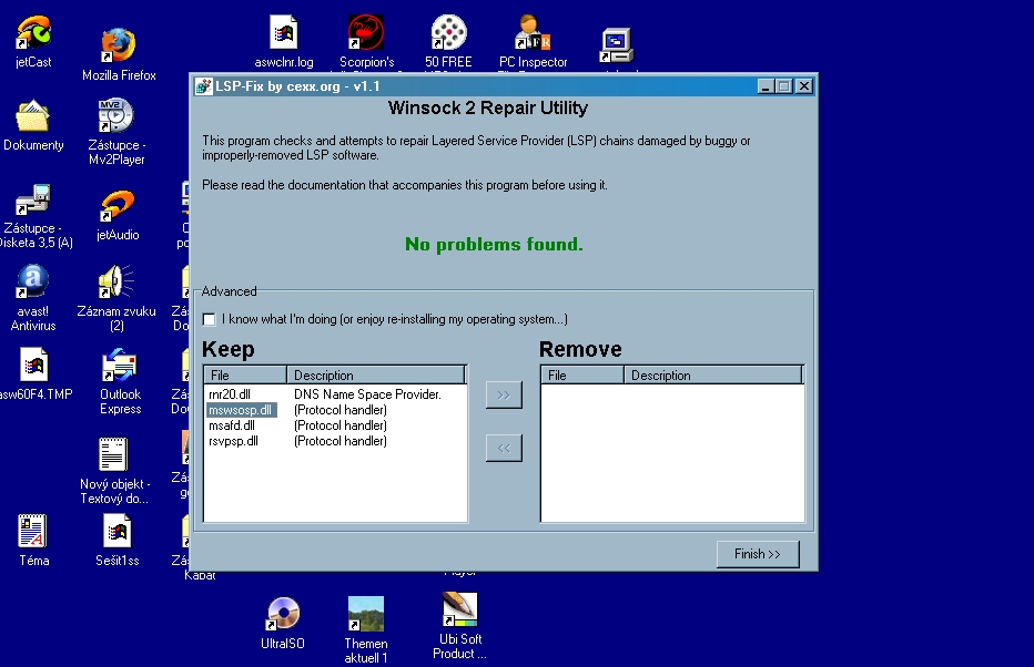 no toš update - scan & clean sem dal a až se to dokončilo tak mi prostě nešel net IE, firefox - nic, ale ICQ mi šlo