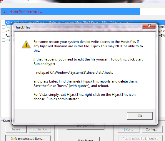 Zavři HijackThis. Následně klikni pravým tlačítkem na ikonu a spusť jako Správce. Musí to jít. Ty zřejmě spouštíš už jednou spuštěný program.