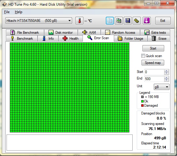 Spusť Start a počkej , až skončí svojí práci. Pokud budou všechny čtverečky zelené je disk OK , pokud budou některá červená , disk odchází.