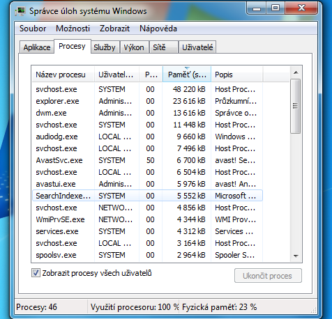 Re: Velké využití CPU kolem 100% po zapnutí Pc